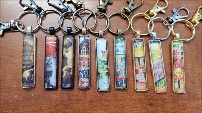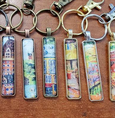 Porte-clés ornés de fragments de tableaux de notre galerie, rectangles étroits