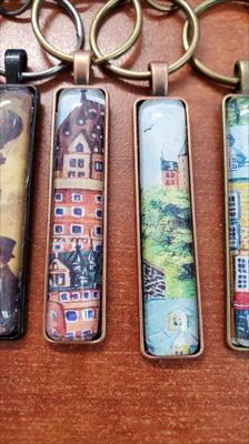 Les porte-clés ornés de fragments de tableaux de notre galerie sont des rectangles étroits.