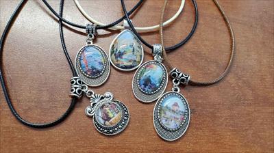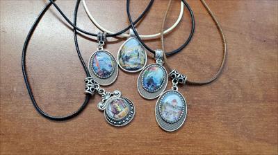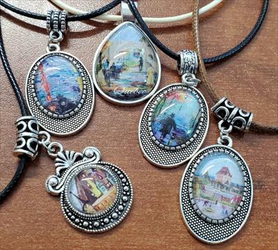 Petits pendentifs sur cordons multicolores avec des reproductions de tableaux de notre galerie