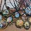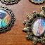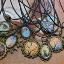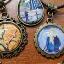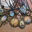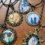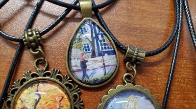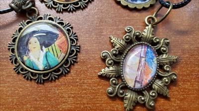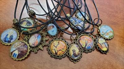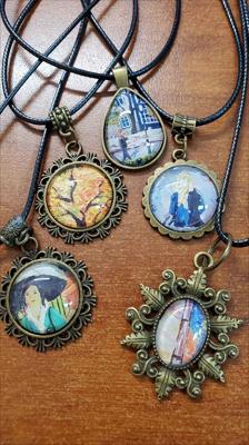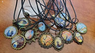 Pendentifs sur cordon noir avec reproductions de tableaux de notre galerie, laiton moyen