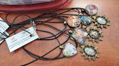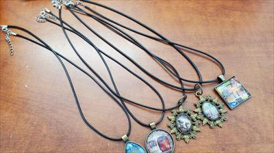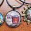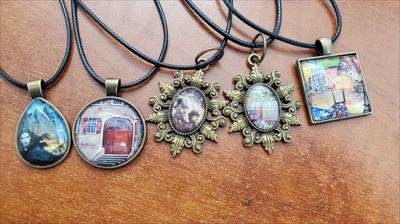 Pendentifs sur cordons noirs avec bases en laiton de différentes tailles